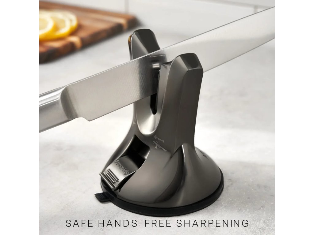 - Všestranné broušení: Obnovuje ostrost kuchyňských nožů, tvrzené oceli, seker a dokonce i zoubkovaných čepelí.