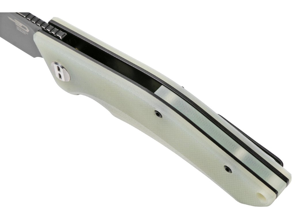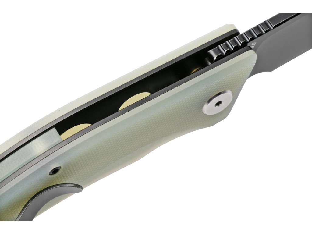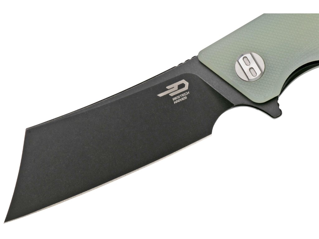 Rukojeť nože Bestech Cubis je vyrobena z nefritové G10, což je materiál známý svou odolností a lehkostí. G10 poskytuje vynikající přilnavost a odolnost vůči vlhkosti a chemikáliím, což je ideální pro použití v různých podmínkách. Elegantní nefritová barva dodává noži moderní a stylový vzhled, který zaujme na první pohled. Ergonomický tvar rukojeti zajišťuje pohodlný úchop, který minimalizuje únavu při dlouhodobém používání a zvyšuje kontrolu nad nožem.