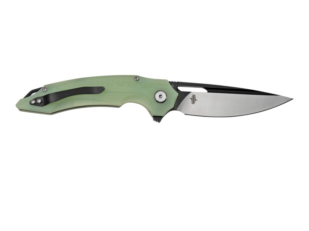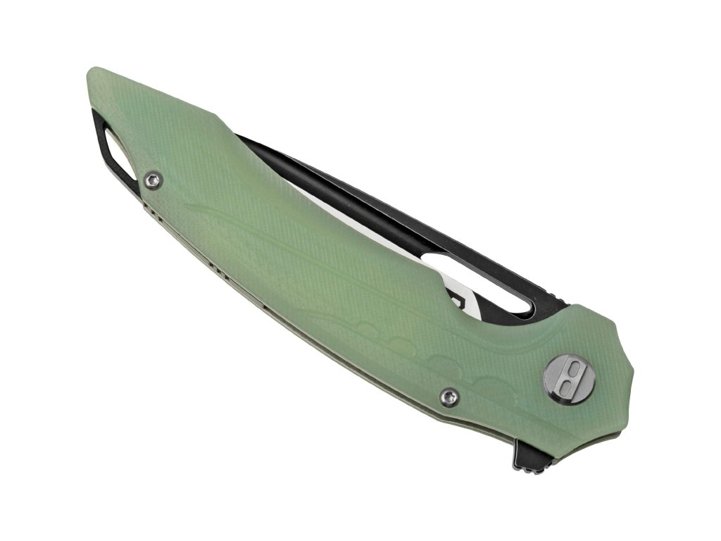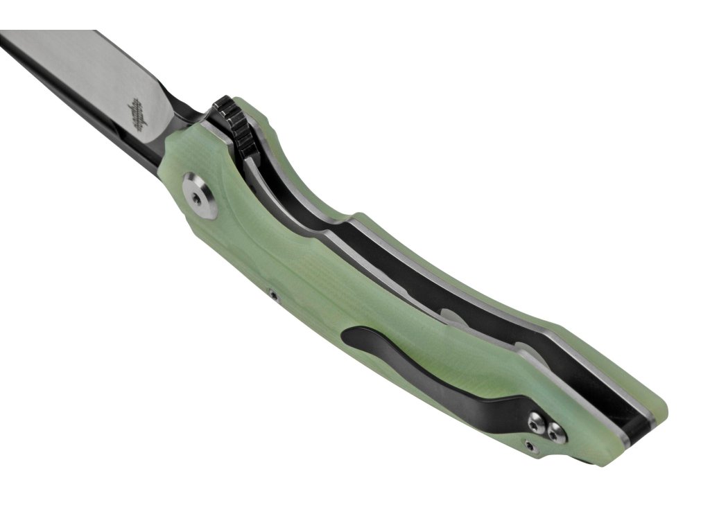 Rukojeť nože Bestech Ornetta je vyrobena z G10 v atraktivní nefritové barvě. Tento materiál je známý svou odolností, lehkostí a schopností odolávat vlhkosti a extrémním teplotám, což zajišťuje spolehlivý úchop i v náročných podmínkách. Ergonomicky navržené střeny rukojeti poskytují pohodlné držení, což usnadňuje dlouhodobé používání bez únavy.