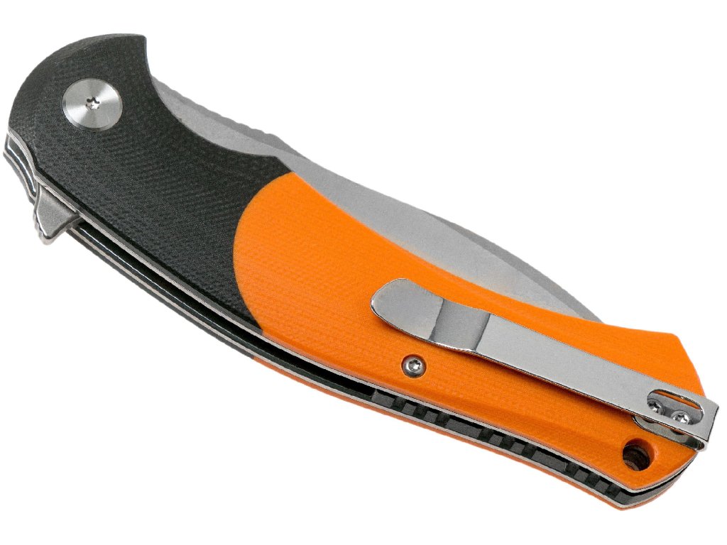 Rukojeť nože Bestech Penguin je vyrobena z odolného materiálu G10, který poskytuje pevnost a odolnost vůči nárazům i vlhkosti. Kombinace černé a oranžové barvy dodává noži moderní a výrazný vzhled, který zaujme na první pohled. Ergonomický tvar rukojeti zajišťuje pohodlné a bezpečné držení i při delším používání.