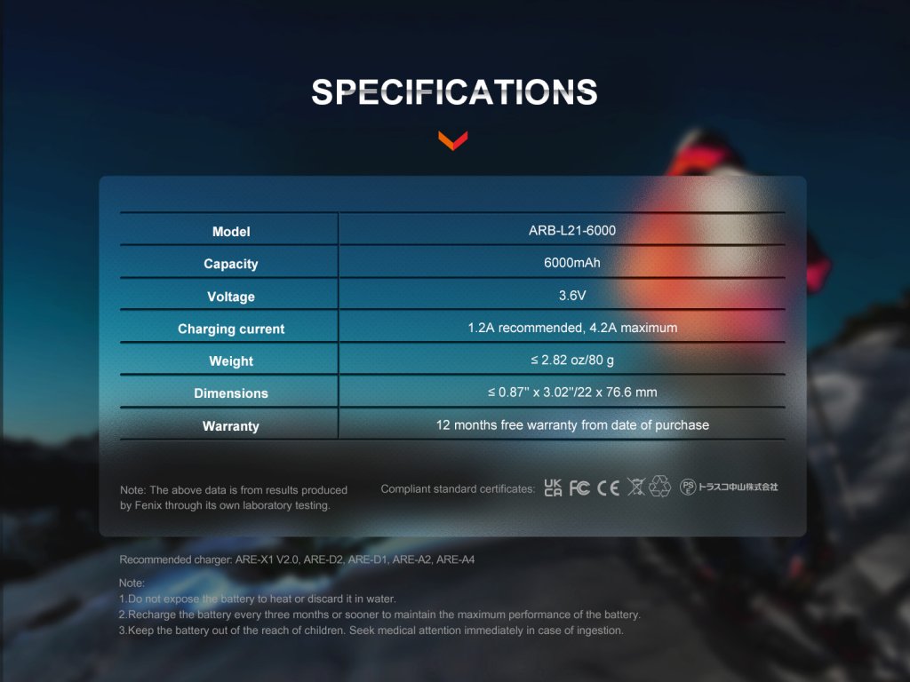 Fenix 21700 6000 mAh je ideální volbou pro uživatele, kteří požadují extrémní výdrž, vysoký proudový výkon a maximální bezpečnost při profesionálním i outdoorovém použití.