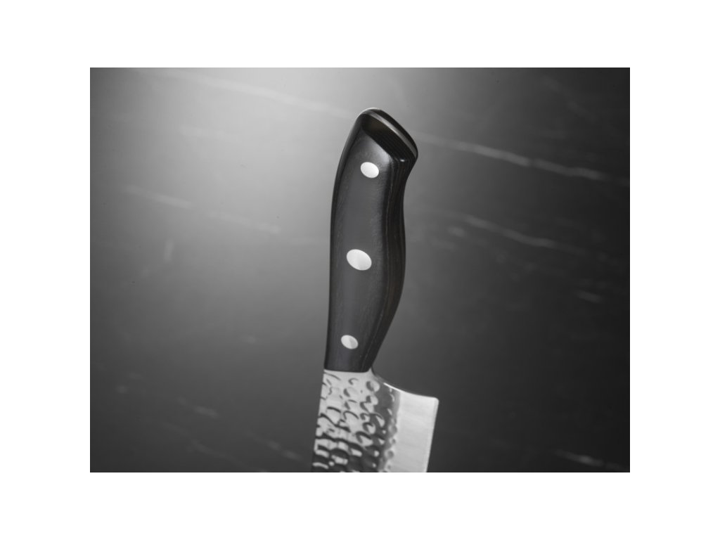 - Čepel z nerezové oceli X50 Cr Mo V15 – výjimečná odolnost, dlouhotrvající ostrost a vysoká pevnost.