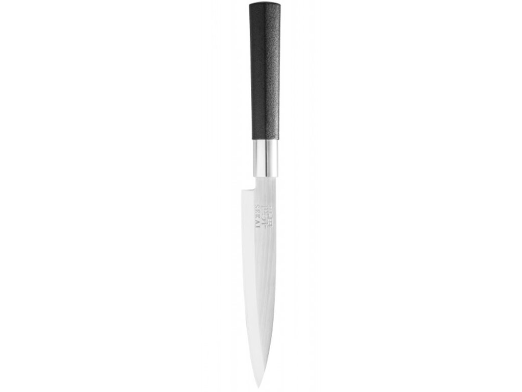 - Ideální pro zpracování ryb – dlouhá a úzká čepel umožňuje plynulé krájení jedním tahem bez poškození struktury masa.