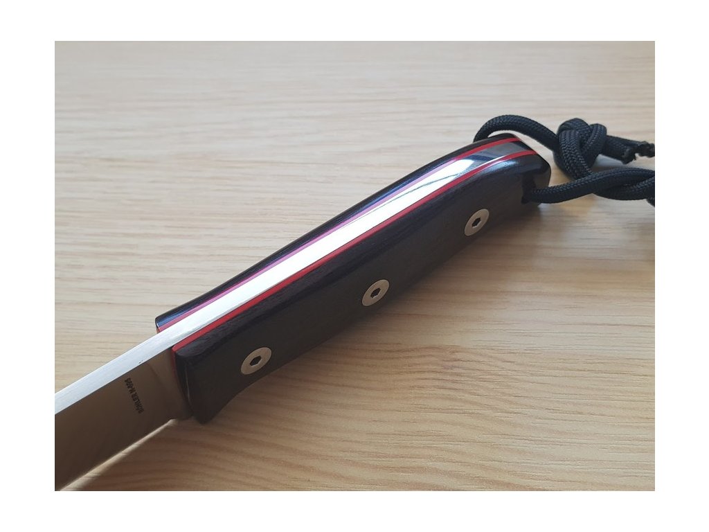 - Čepel z oceli Böhler N695: Kvalitní ocel o délce 10 cm a plochým výbrusem poskytuje výjimečnou odolnost a schopnost udržet ostří při dlouhodobém používání.