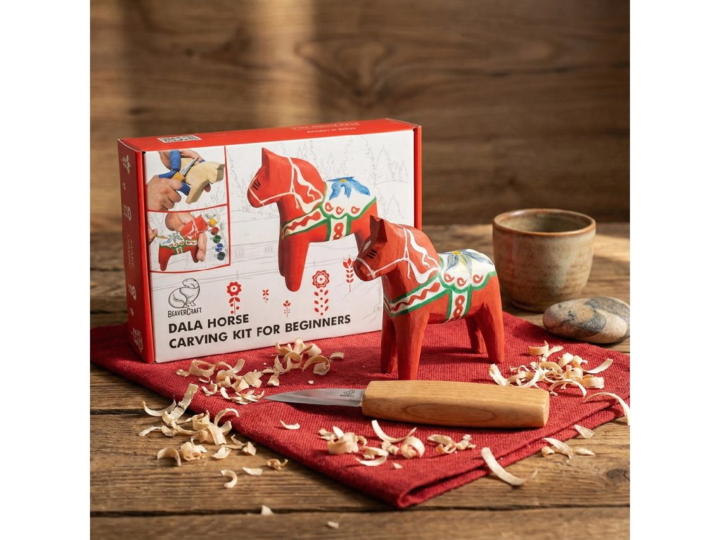 Morakniv Woodcarving KIT Dala Horse 120 je kompletní řezbářská sada, která vám umožní vytvořit vlastního dřevěného Dala koníka – ikonický symbol regionu Dalarna a švédského lidového řemesla. Sada je navržena tak, aby byla snadná na použití, inspirativní a vhodná pro každého, kdo chce objevit kouzlo ruční řezby.