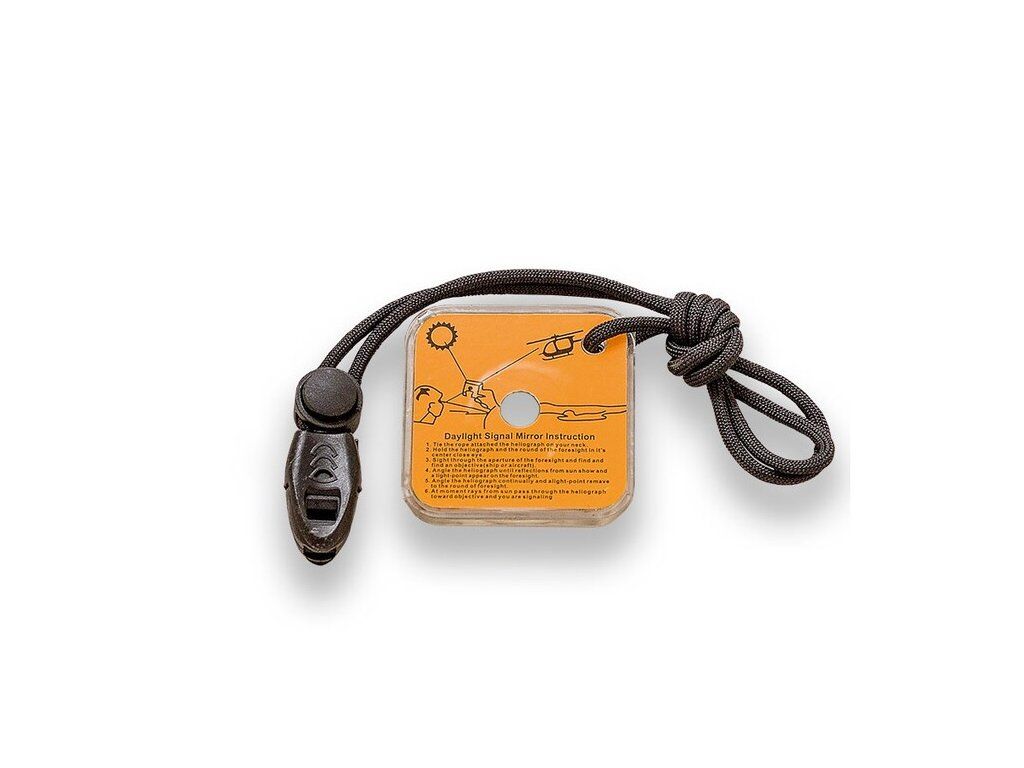 - Výbava: firesteel / ferrocerium, zrcátko, píšťalka, 2 m paracordu 550