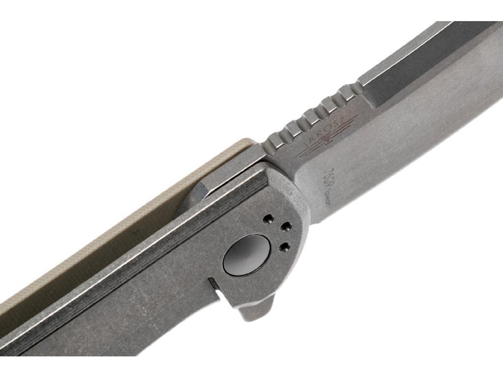 Čepel ze zatvrdlé nerezové oceli AUS-8A nabízí snadné broušení a dobré držení ostří. G10 rukojeť poskytuje lehkost a vysokou odolnost, zatímco titánový frame-lock garantuje bezpečné používání. Flipper a teflonové podložky umožňují rychlé, hladké a spolehlivé otevření jednou rukou.