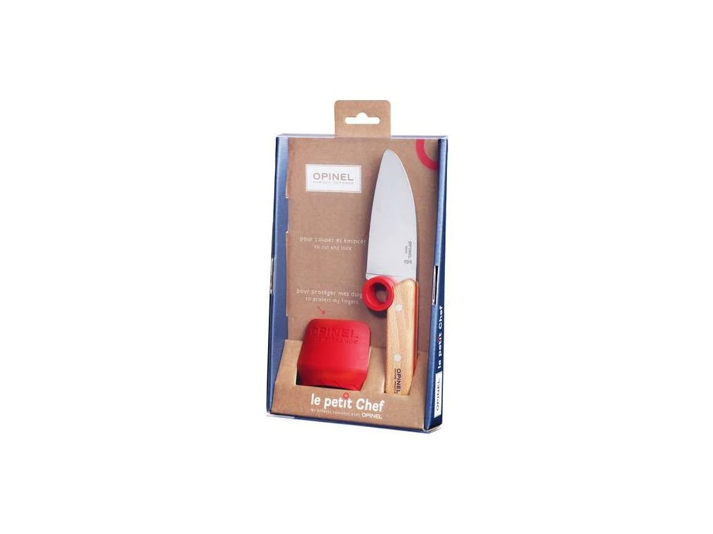 Opinel dětská kuchyňská sada Le Petit Chef s chráničem prstů je promyšlená dětská kuchyňská sada pro malé kuchaře, kteří se chtějí učit krájet bezpečněji, správně a s jistotou. Tato sada pro děti do kuchyně spojuje dětský kuchyňský nůž se zaoblenou špičkou a chránič prstů, díky čemuž pomáhá dětem osvojit si správnou techniku krájení už od začátku. Pokud hledáte kvalitní kuchyňský nůž pro děti, dětský nůž na vaření nebo praktickou Opinel sadu pro děti, model Le Petit Chef je skvělou volbou pro domácí vaření, společné chvíle v kuchyni i rozvoj samostatnosti pod dohledem dospělé osoby.