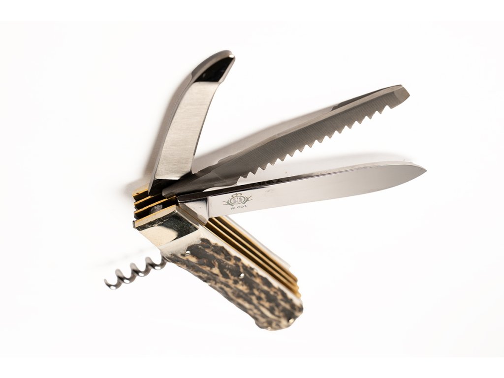Limitovaný lovecký nůž 4v1 s parohovou rukojetí, ocelí 1.4110 a prémiovým koženým pouzdrem – ideální pro náročné lovce.
