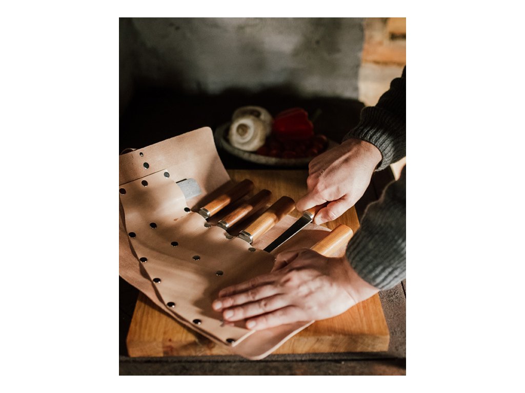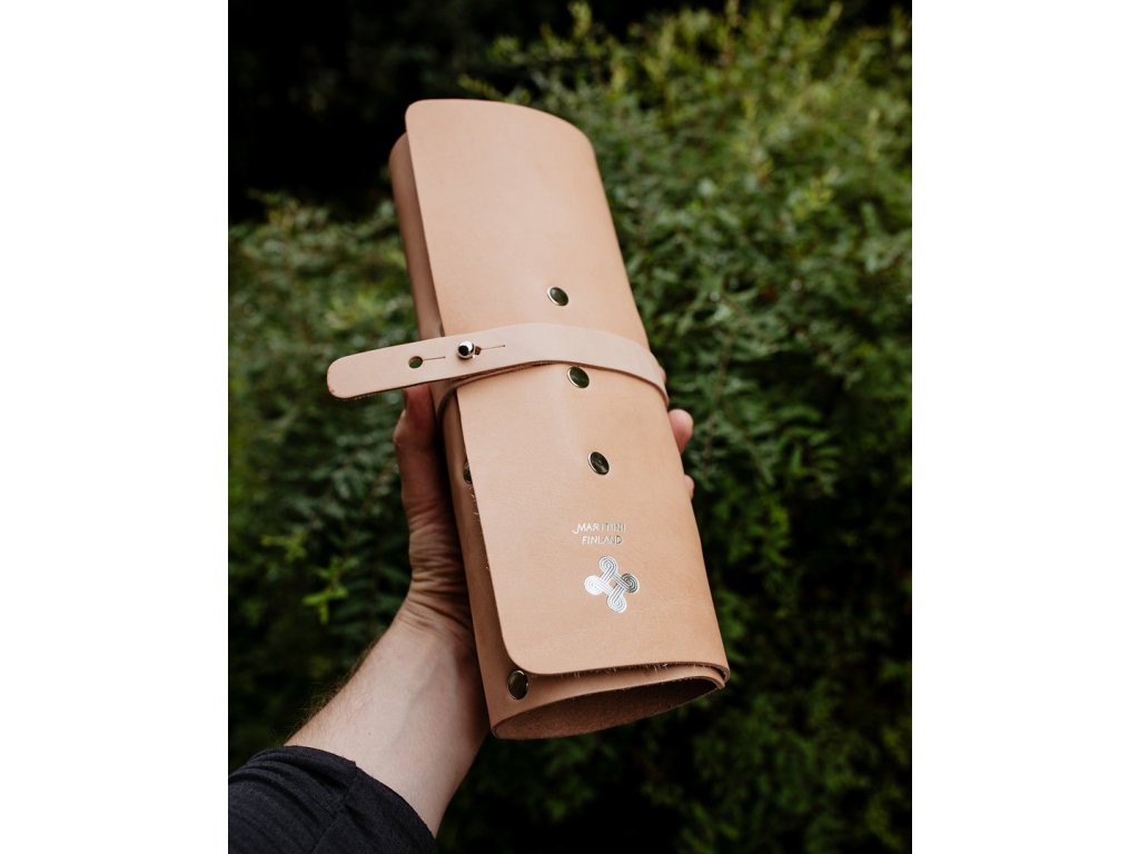 - Kožené rolovací pouzdro – stylové a praktické pro bezpečné přenášení.