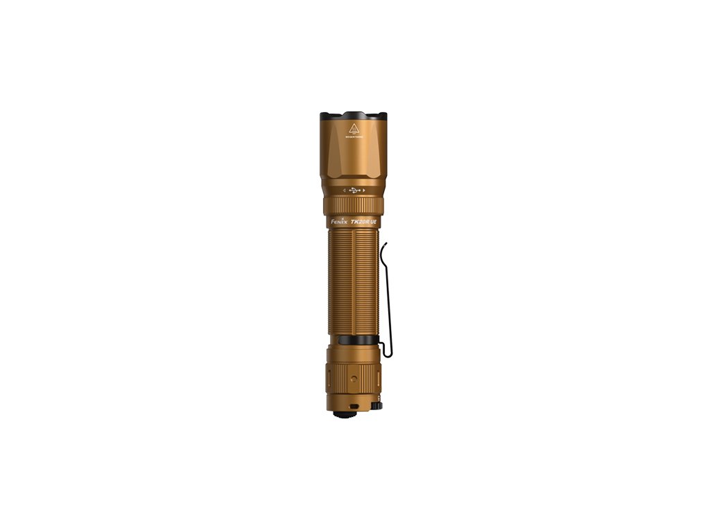 Fenix TK20R UE je výkonná taktická svítilna, která nabízí světelný tok až 2800 lumenů (ANSI) a dosvit 465 metrů. Je vybaveno LED Luminus SFT-70 a hladkým reflektorem, který vytváří dobře zaostřený světelný kužel. Součástí balení je Li-ion akumulátor 21700 s kapacitou 5000 mAh, který se nabíjí přes USB-C konektor přímo ve svítidle. Nabíjecí zdířka je kryta šroubovací maticí, která chrání proti vodě a nečistotám.