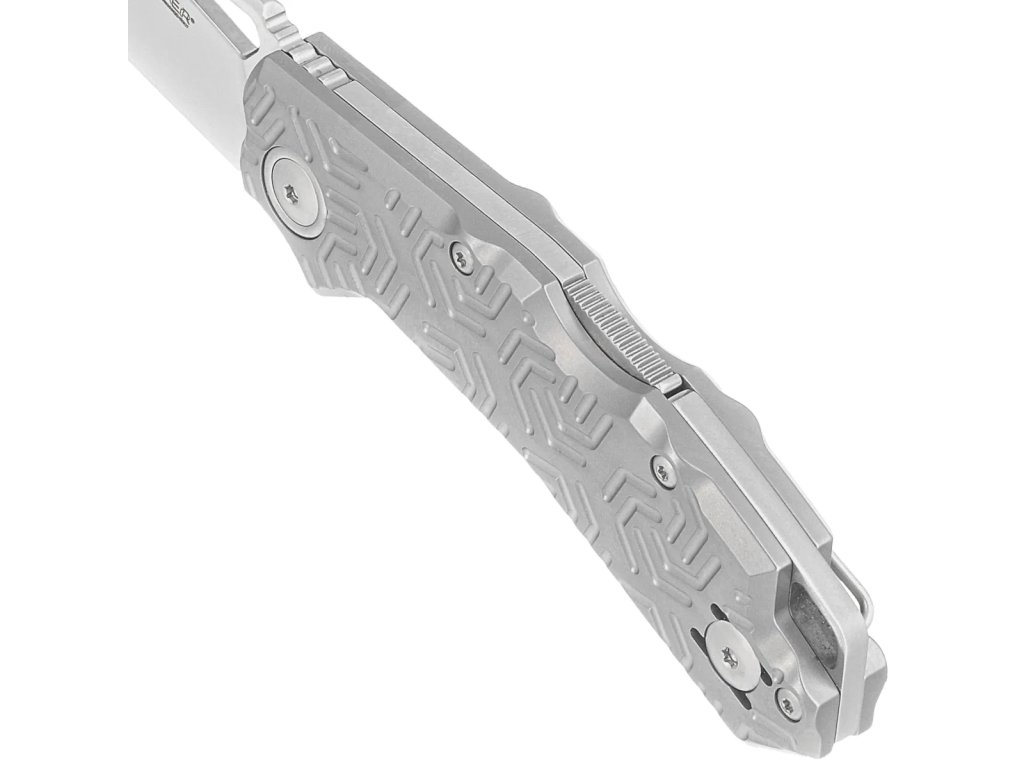 Rukojeť z titanu s jemným 3D texturováním poskytuje vynikající ergonomii, nízkou hmotnost a elegantní vzhled. Spolehlivá back-lock pojistka zaručuje bezpečné uzamčení čepele během používání. Otvor pro palec umožňuje snadné otevření jednou rukou a díky oboustrannému klipu tip-up lze nůž pohodlně nosit na obou stranách.