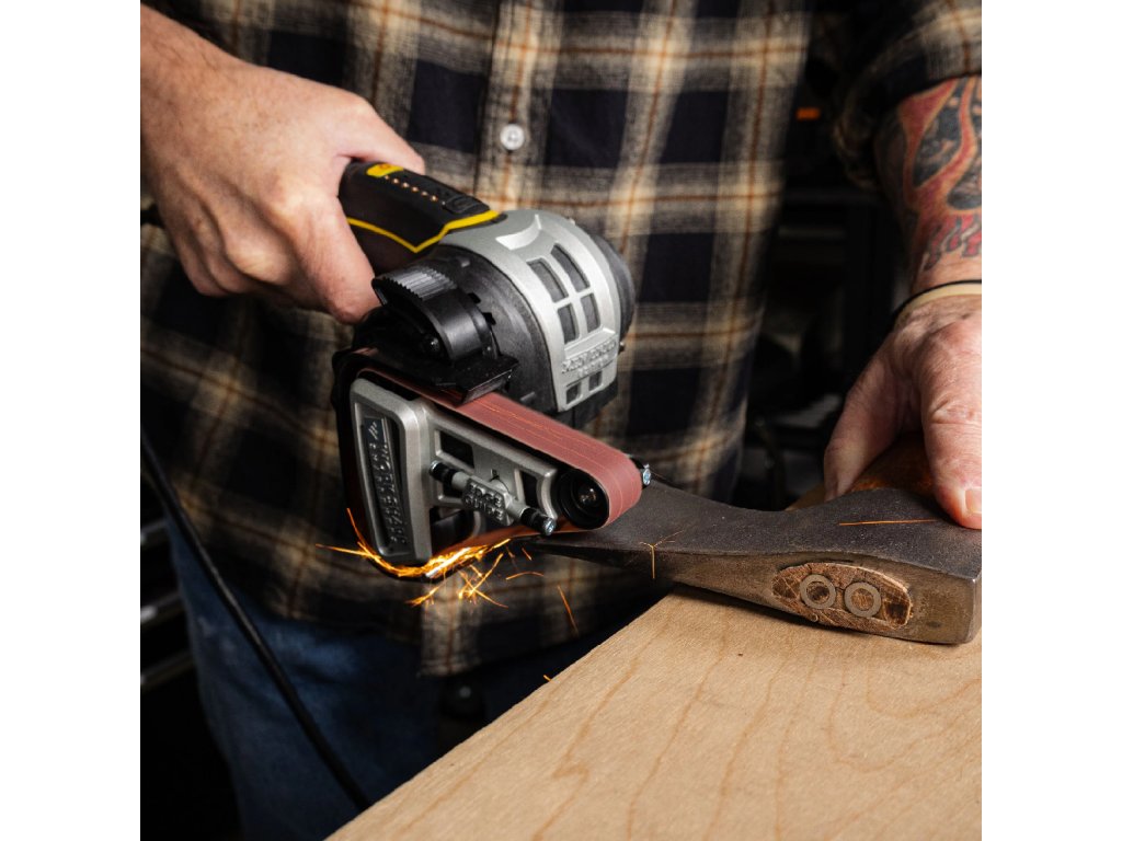 - Vyměnitelné brusné pásy – pro hrubé i jemné broušení s přesnou kontrolou úhlu.
